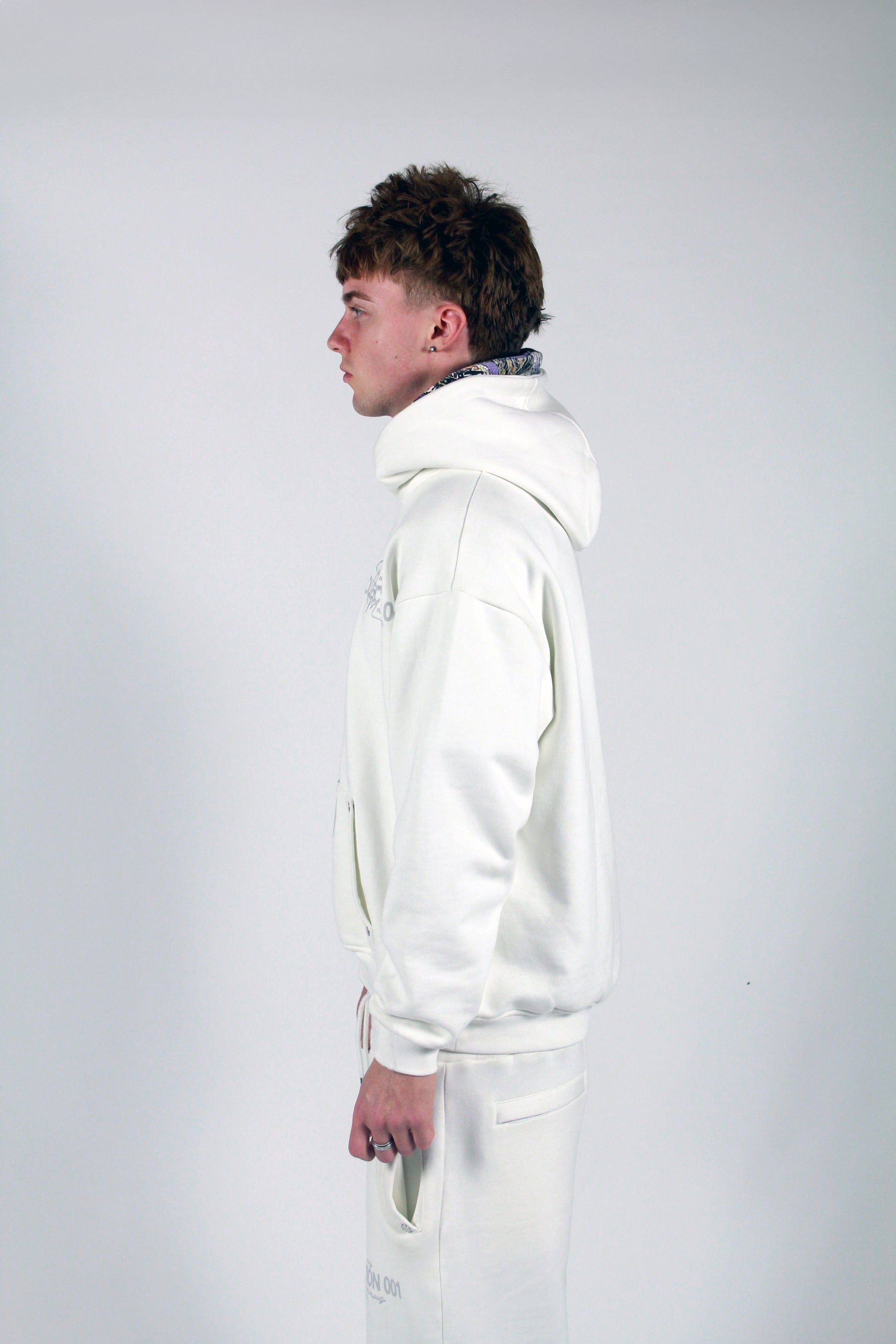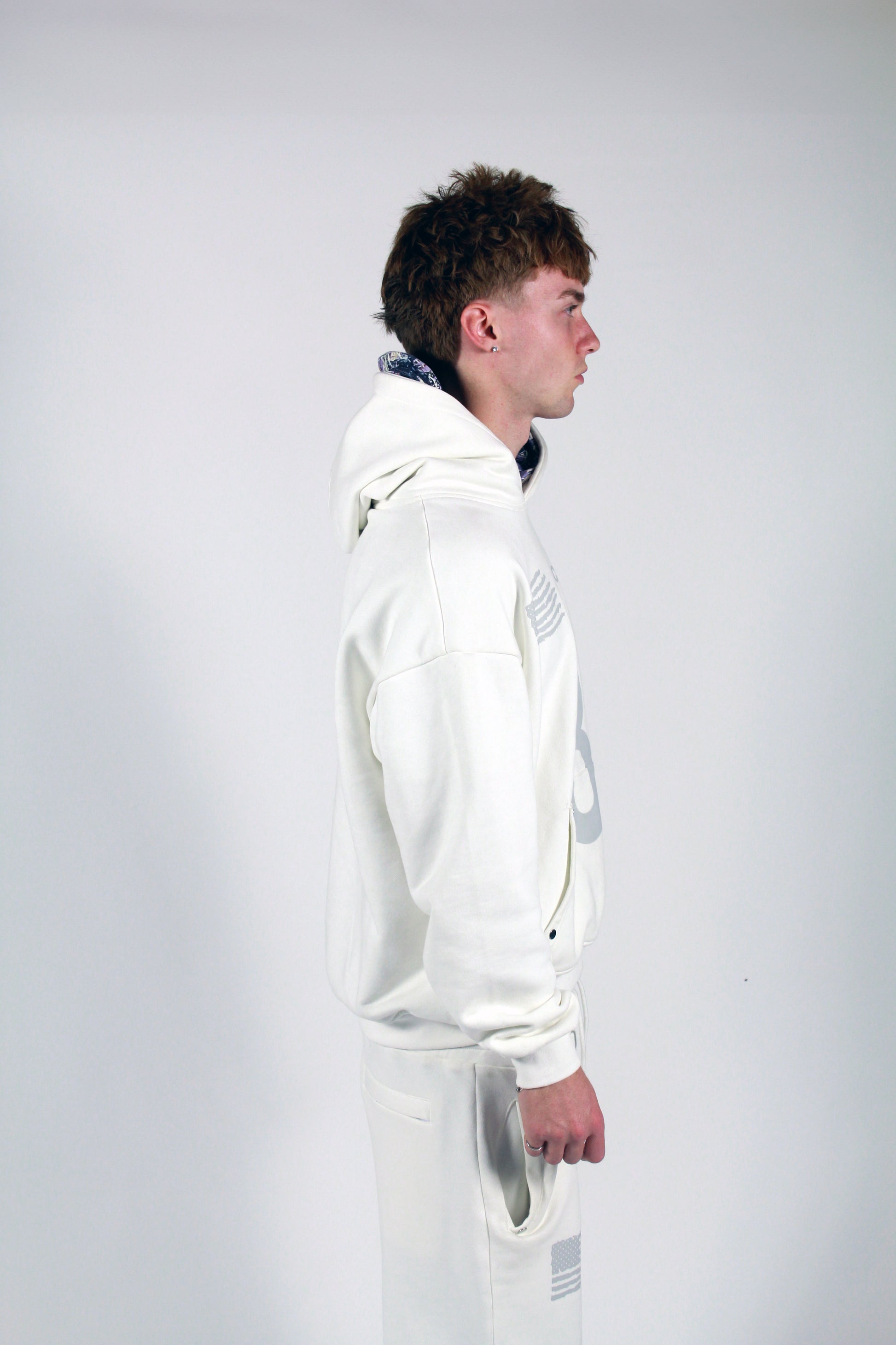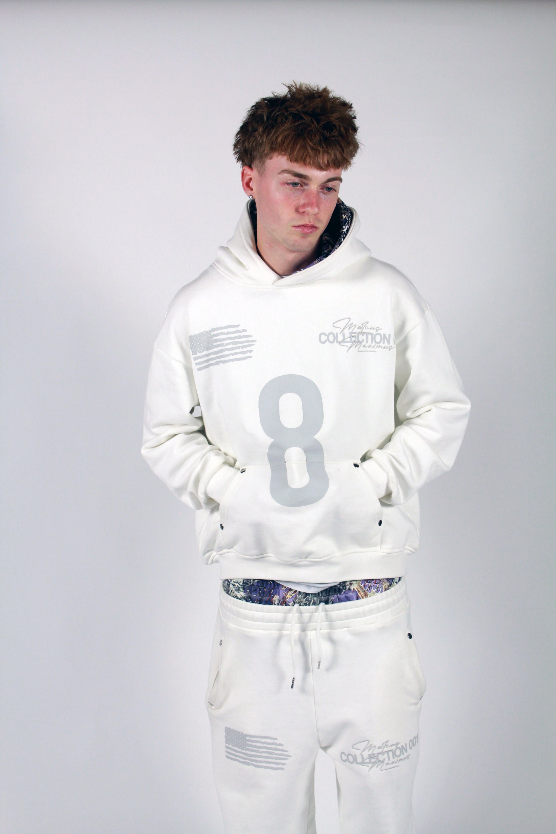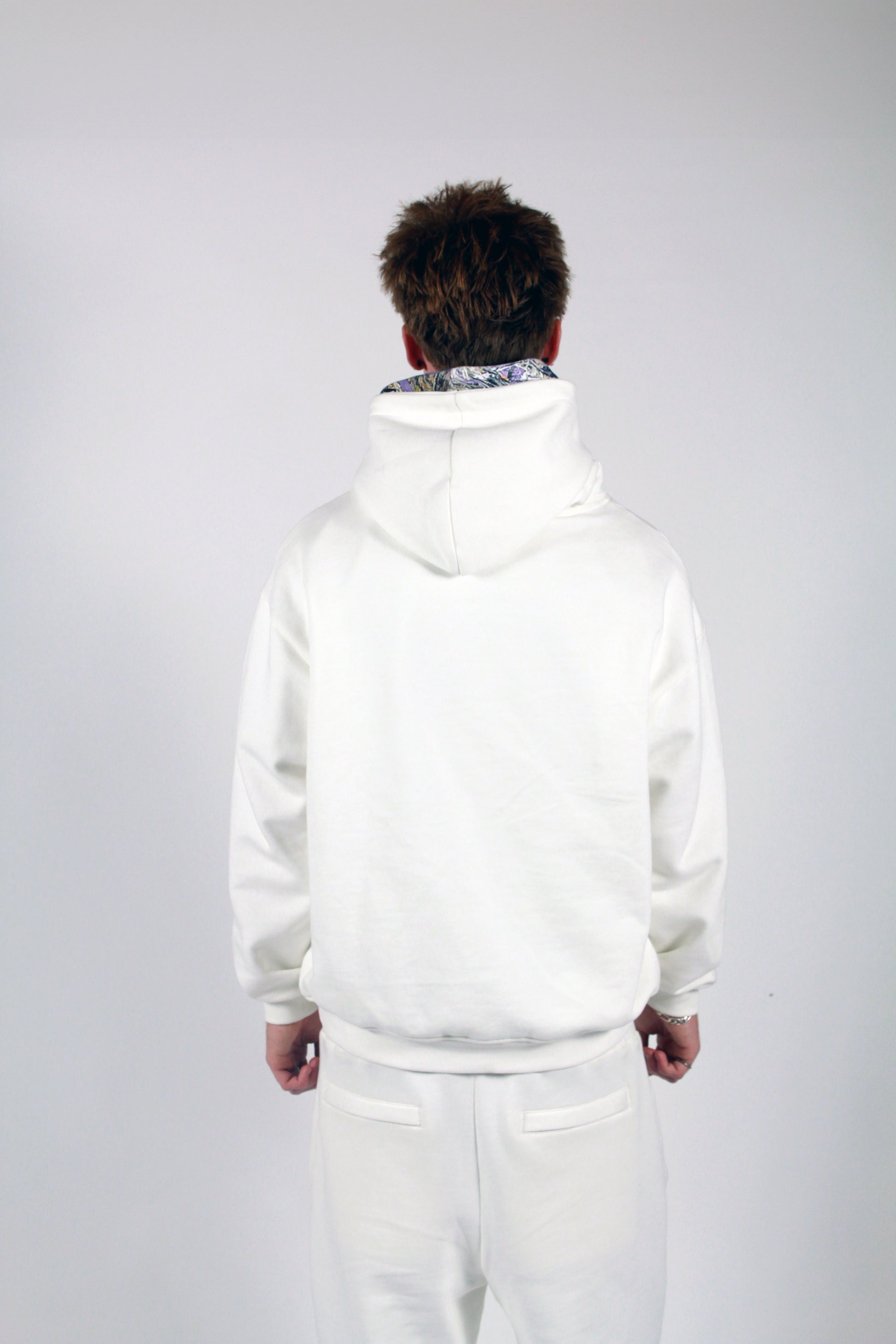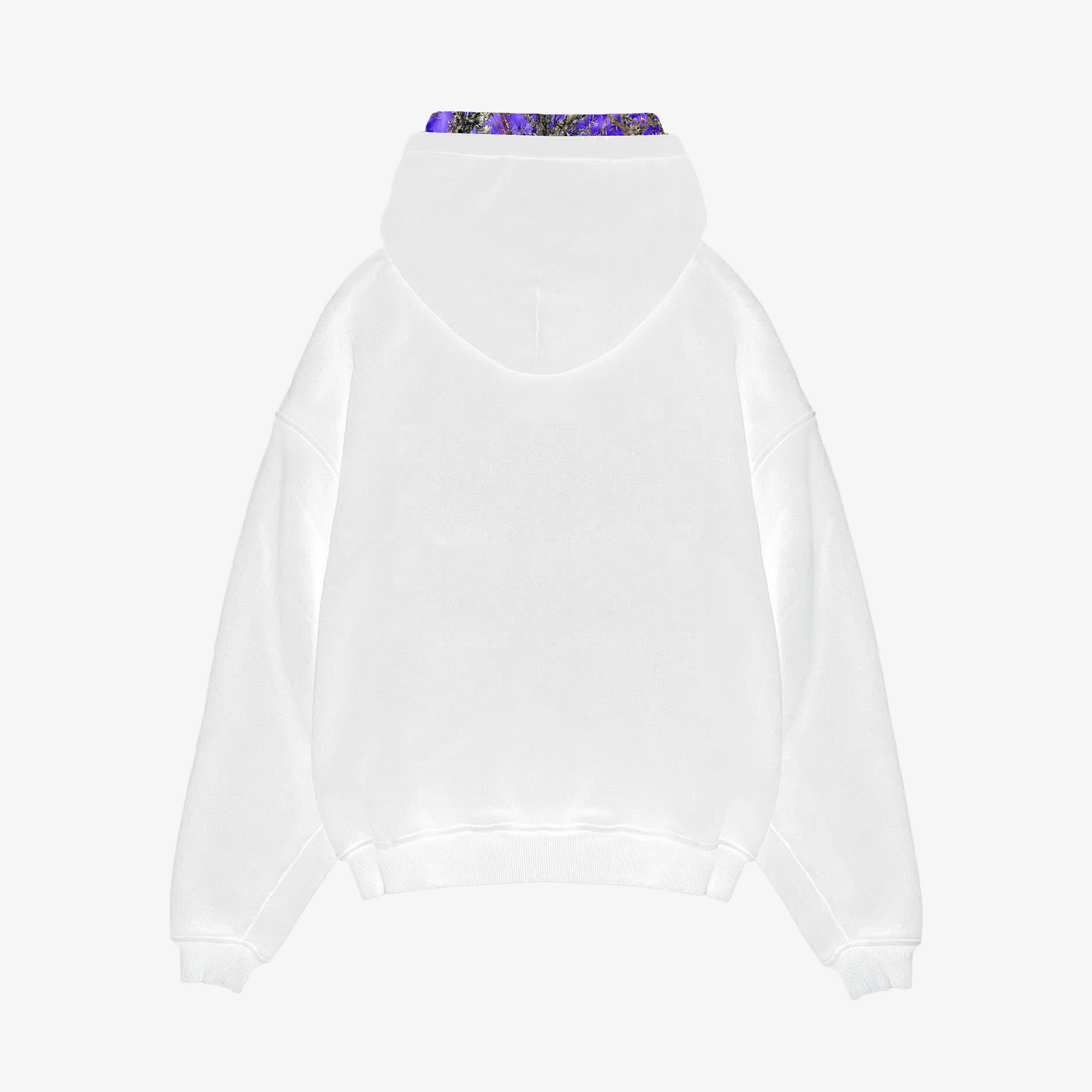 Handcrafted from 100% natural French terry cotton, this heavyweight suit redefines comfort with durability and structure. The innovative double-hood and double-waistband design create a layered, sculpted silhouette. Finished with a bold purple camo print on the inner hood and upper waistband, it balances refinement with edge. Zippered pockets provide function without compromising the clean profile.